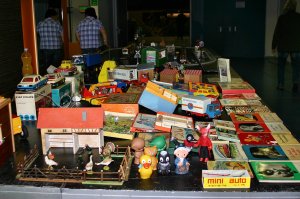 Am 12.10.2012 öffnete für drei tolle Tage die 5. Sächsische Modellbahn & Modellbauausstellung in der Stadthalle in Zwickau ihre Pforten. Auf eine Fläche von 2x6 Meter, erstmalig auf Bühnenelementen (1x2m), präsentierte das DDR Spielzeugmuseum Greiz eine kleine, bunte Auswahl an Exponaten zum Thema DDR Spielzeug. Dabei war auch wieder unsere Spieleisenbahn in Spur 0. Als besondere Attraktion präsentierte wir eine Lionel Standart Gauge aus den 20er Jahren des 20. Jahrhunderts aus den USA, die Bahn wurde als noch nicht fahrend gezeigt, dies soll sich jedoch in absehbarer Zukunft ändern. Viele Besucher unseres Standes waren begeistert, erinnerte es sie an ihre Kindheit zurück. Auch die jungen Generationen fanden alte Bekannte wie unser Sandmännchen, Pitti &Schnattchen oder Herr Fuchs und Frau Elster. Besondere Beachtung fanden die Kinderbücher des DFF, welche es heute teilweise als Wiederauflagen gibt. Wir freuen uns und hoffen, dass wir auch das nächste Mal in der Stadthalle in Zwickau dabei sein können wenn es wieder heißt "Sächsische Modellbahn und Modellbauausstellung". |