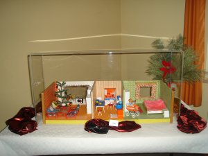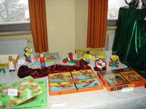 Am 15.12.2012 wurde im Rotschnabelnest in Reichmannsdorf einen kleine Weihnachtsausstellung mit Exponaten aus dem DDR Spielzeugmuseum Greiz eröffnet. Uns war es auf Grund der winterlichen Wetterverhältnisse mit Glatteis und Eisregen leider nicht möglich die kleine Ausstellung selbst zu eröffnen. Die Ausstellung fand solch einen großen Zuspruch, dass diese bis zum 14.04.2013 verlängert worden ist. |