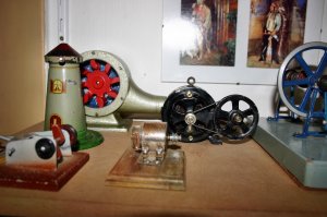 Dies im wahrsten Sinne des Wortes. In einer kleinen Sonderaustellung zeigen wir Dampfspielzeuge aus der DDR. Die bekanntesten dürften die Betriebmodelle oder Maschinenmodelle von E.K.T. oder PREFO sein und die Dampfmaschinen von Gaselan. Dampfspielzeuge hat es in der DDR von ca. 1954 bis 1989 gegeben. Auch gab es noch viele vor allem kleine Betriebe welche sich dem Thema Dampfspielzeug und Betriebsmodelle verschrieben hatten wie die Firmen Steyer oder Sachsenmeister um hier nur einmal zwei zu erwähnen. Bei Voranmeldung ist es möglich einmal eine Dampfmaschinenanlage in Funktion zusehen, Bild 2. Es ist immer wieder auf Neue faszinierend zu sehen wie aus Feuer, Wasser, Dampf wird und schließlich in Arbeit umgewandelt wird. Es ist bewegte Technik, man sieht, dass etwas geschieht. Eine Dampfmaschine, Lokomobile oder Dampflokomotive ist bewegte Technikgeschichte ein Meilenstein in der technischen Revolution. |
