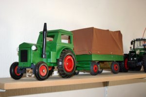 Traktoren begeistern seit ja her alt und jung. Traktoren waren es welche zu Beginn des 20. Jahrhunderts die Landwirtschaft revolutionierten und die Arbeit der Bauern oder wie es heute heißt der Landwirte zu erleichterten. Heute nicht mehr weg zu denken. Sie lösten die Zugtiere wie das Pferd ab. Da gab es so klingende Namen wie Lanz Bulldog oder Hanomag bei den Modellen von vor 1950 oder wie den Pionier oder den ZT 300 aus der DDR. Bis hin zu den Giganten von heute wie den Fendt 936 Vario oder den riesigen John Deere 9420. Wir haben einmal einige Modelle ausgewählt und mit den RC-Modellen von heute zu einer kleinen Ausstellung zusammen gestellt. Nicht zu vergessen die vielen anderen Traktoren welche es noch in den Kinderzimmern gegeben hat, aus Holz, Plast oder die kleinen Modelle für die Modelleisenbahn. |