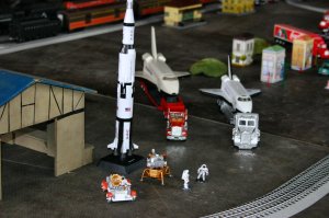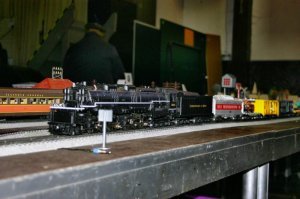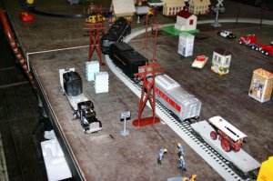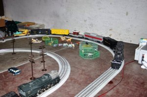Am Sonntag, waren wir bei den Geraer Eisenbahnwelten zum US-Day eingeladen. Vom Wetter her war es nicht schön, Dauerregen. Trotz des miesen Wetters haben sich einige Besucher herausgetraut. Wir hatten im Lokschuppen eine Bühne von 2x6 Metern wo wir aufbauen konnten. Ich hatte eine Spur 0 Anlage und die Lionel Standard Gauge aufgebaut. Getreu dem Motto der Veranstaltung US-Day mit dem entsprechenden Zubehör. Da die angemeldeten Oldtimer, Autos und Motorräder aus den USA wegen dem Regen abgesagt hatten, mussten halt die 1:43 Modelle einspringen. Dennoch gab es jede Menge gute Laune und Spaß hat es obendrein auch gemacht. |